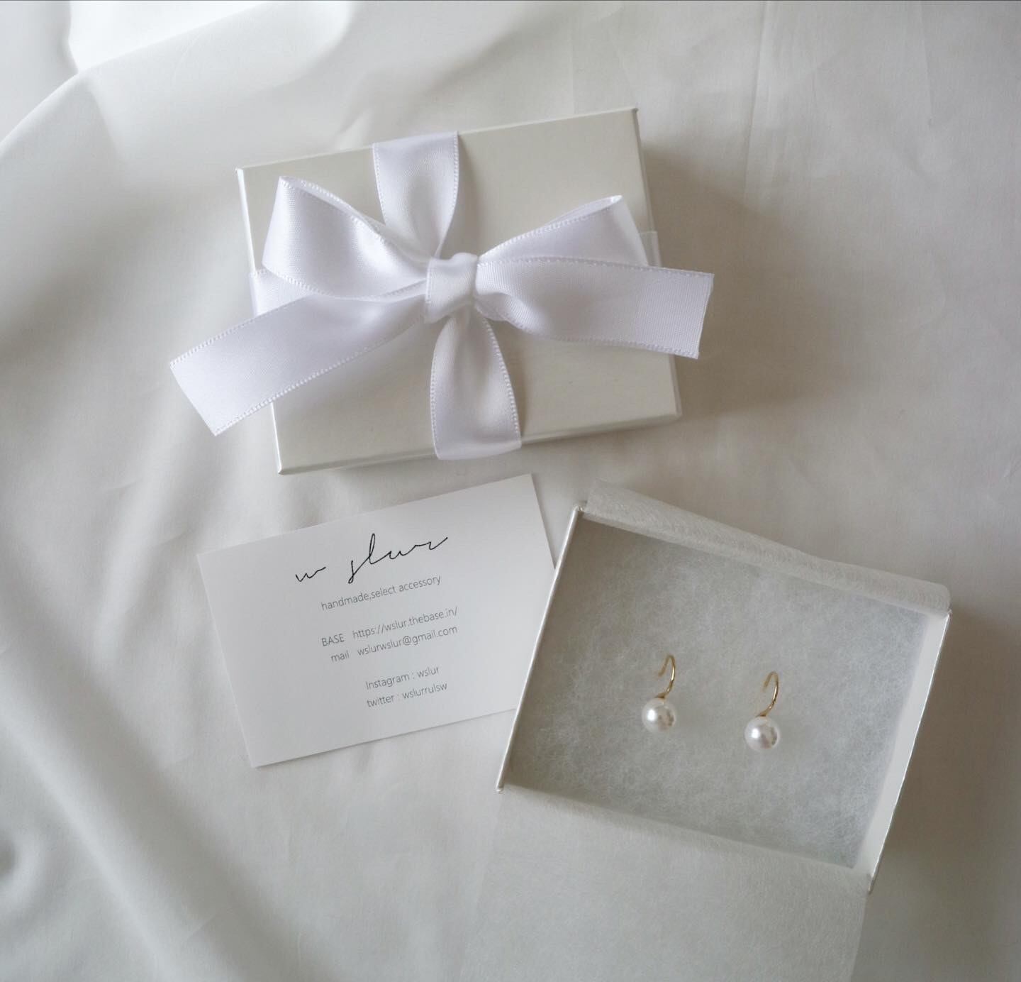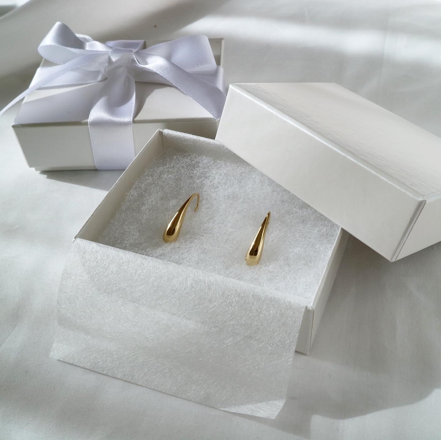 シンプルなホワイトカラーのボックスとリボンで