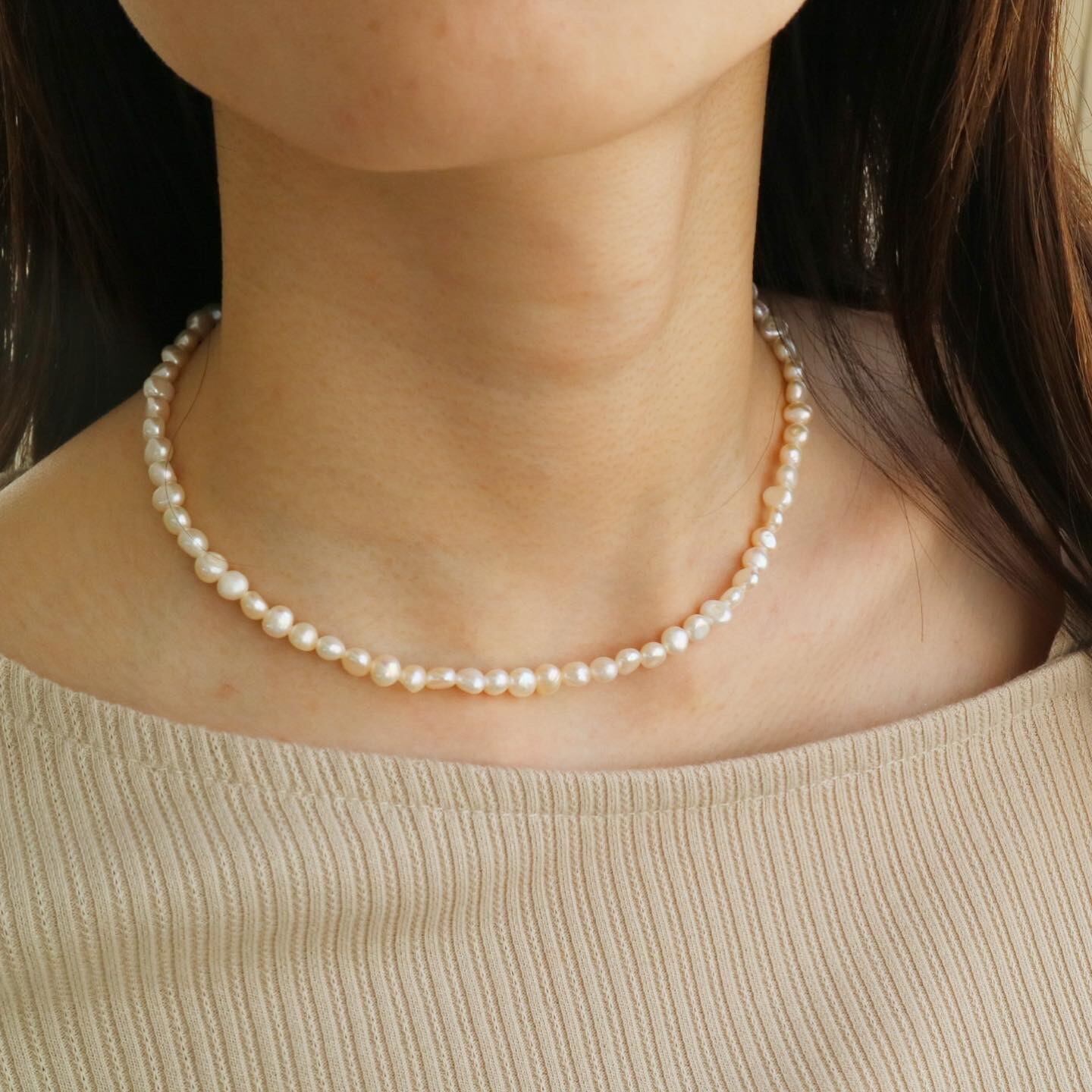 一粒ずつ表情の違う淡水パールが首元をとても綺麗に見せてくれます。