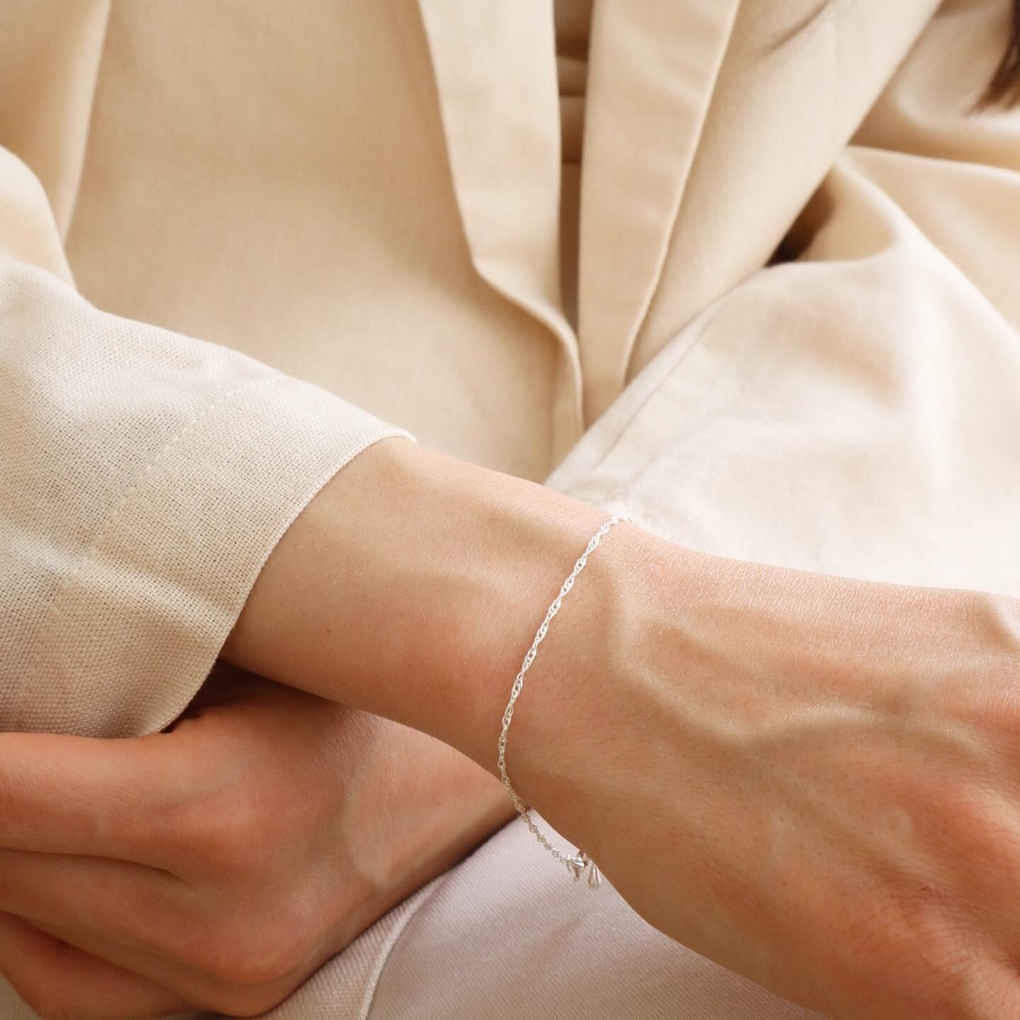 とても繊細なチェーンを使用したシンプルなブレスレットです。