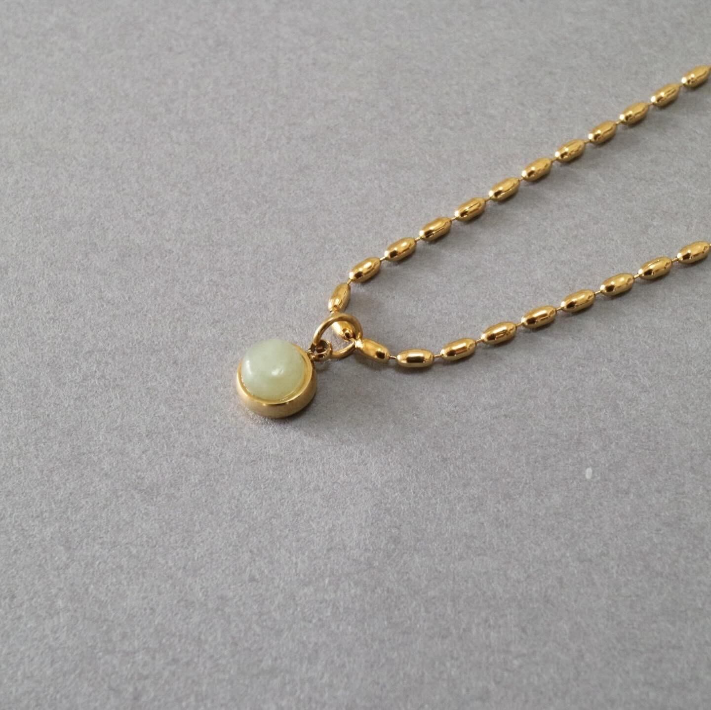 グリーンがかった乳白色のストーンが美しいネックレスです。