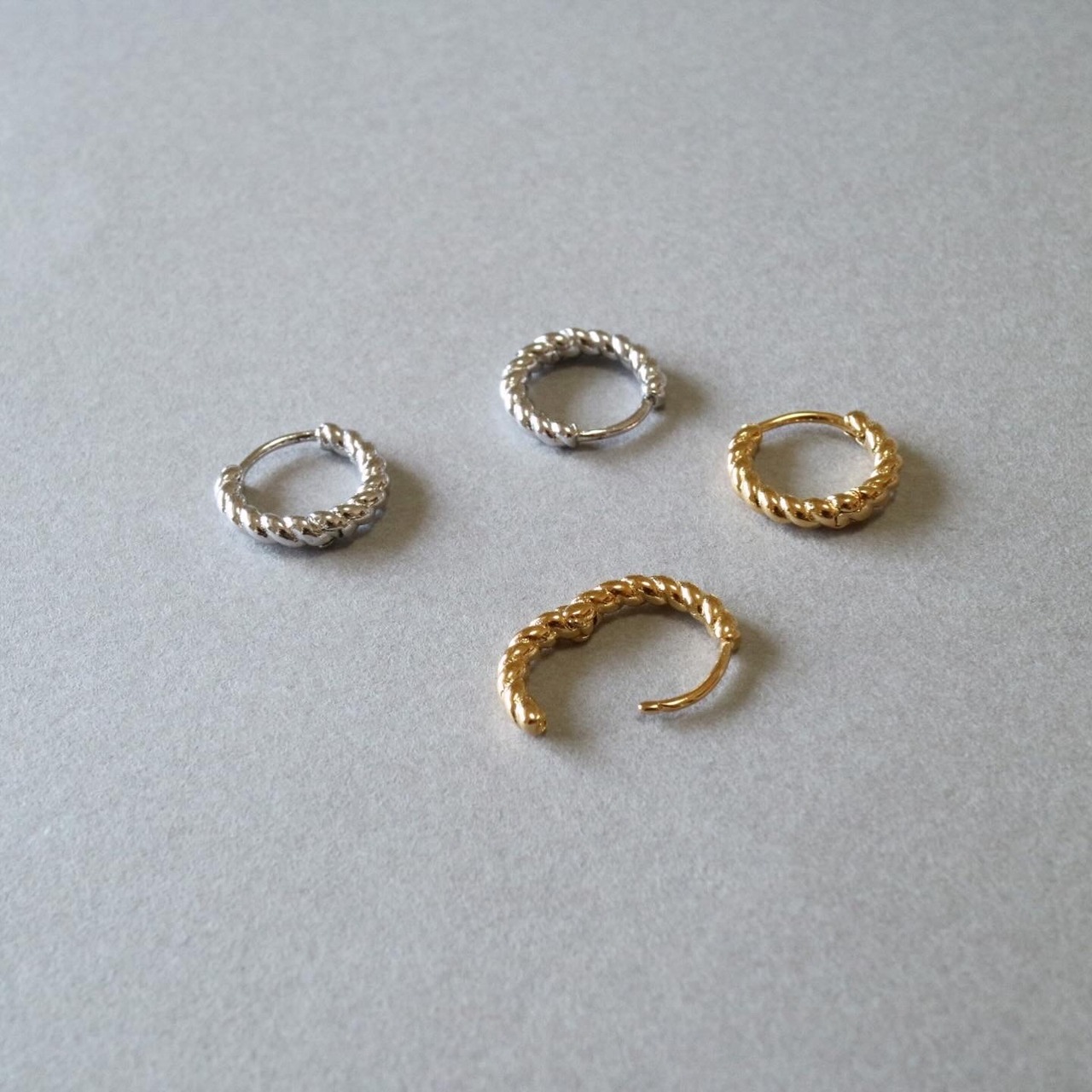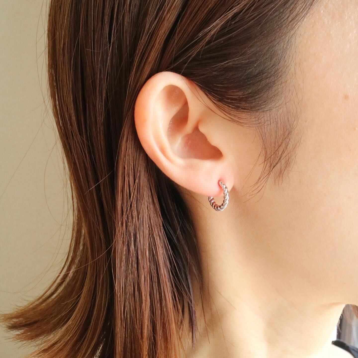 シンプルなツイストデザインのワンタッチフープピアスです。