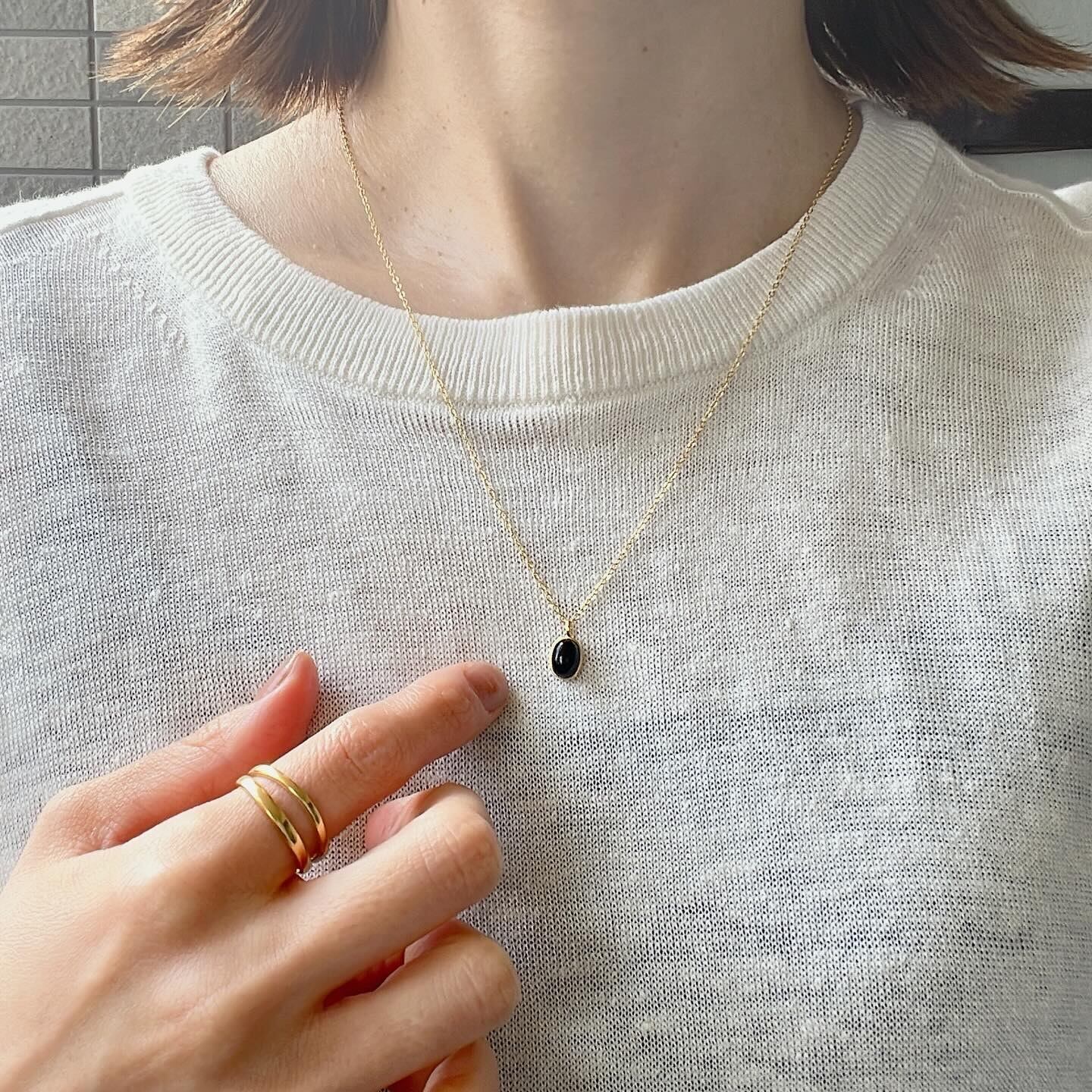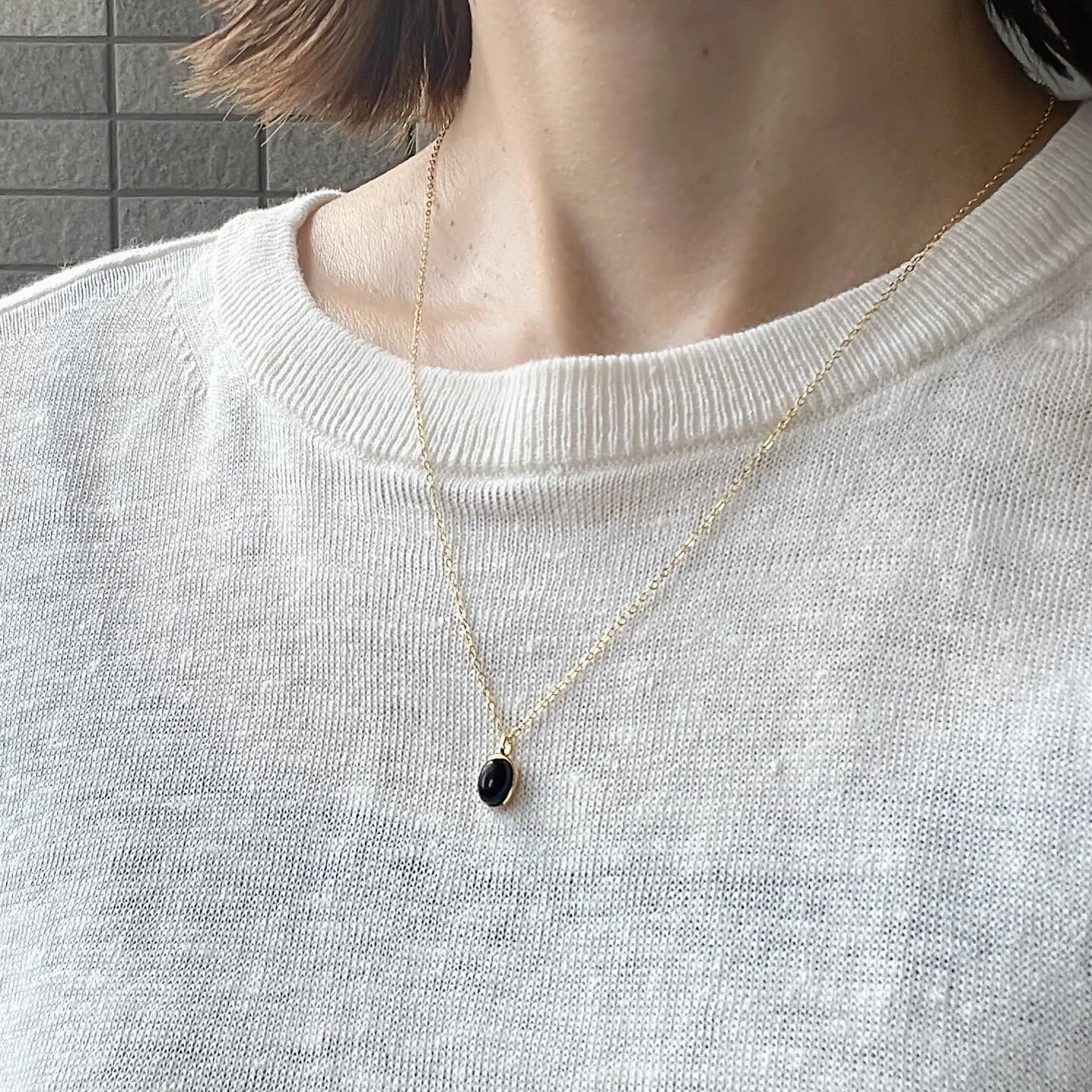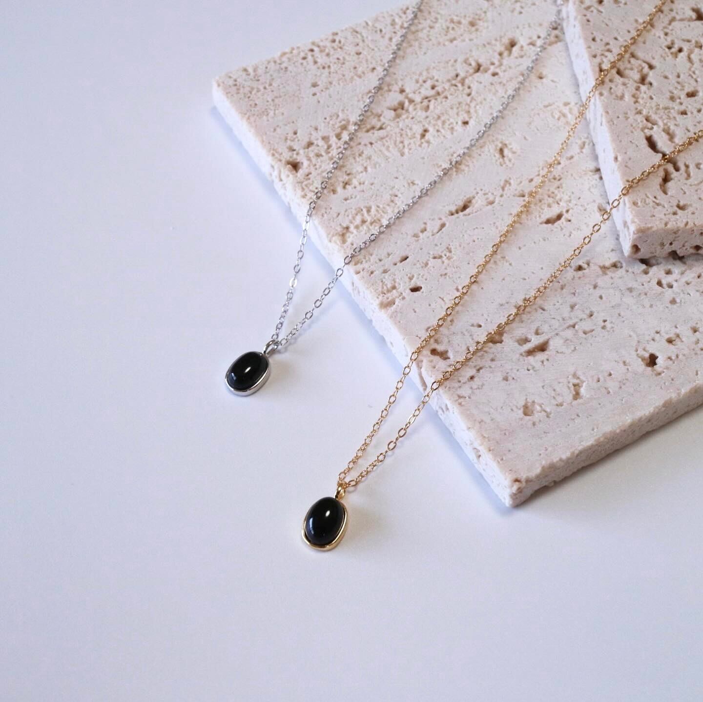 ミニサイズのブラックストーン風モチーフが可愛いネックレスです。