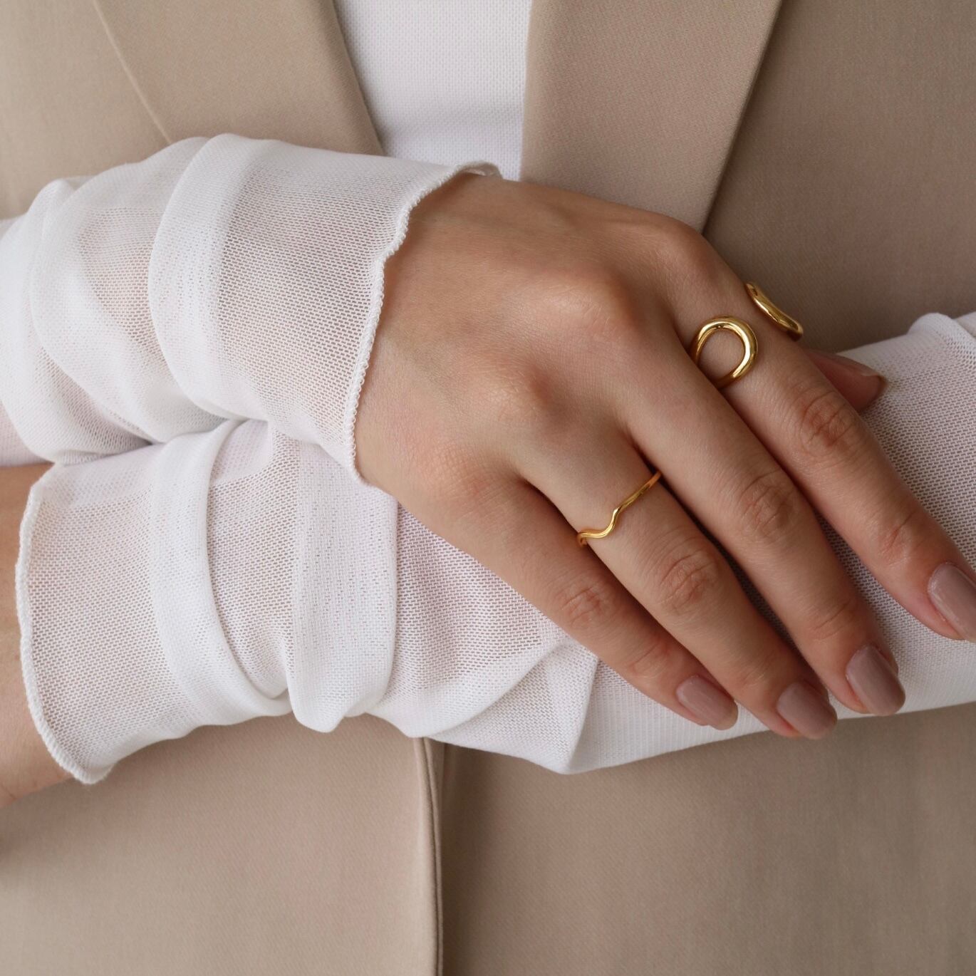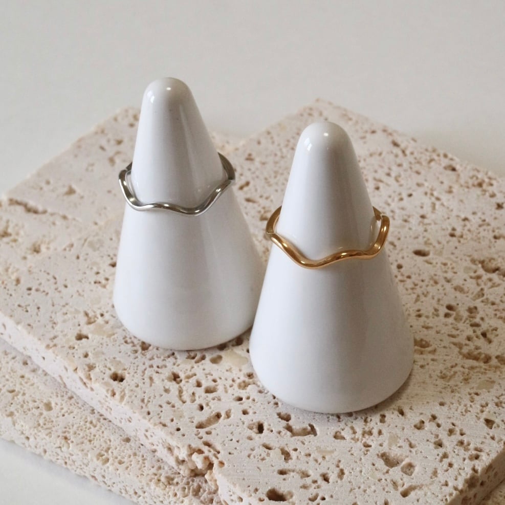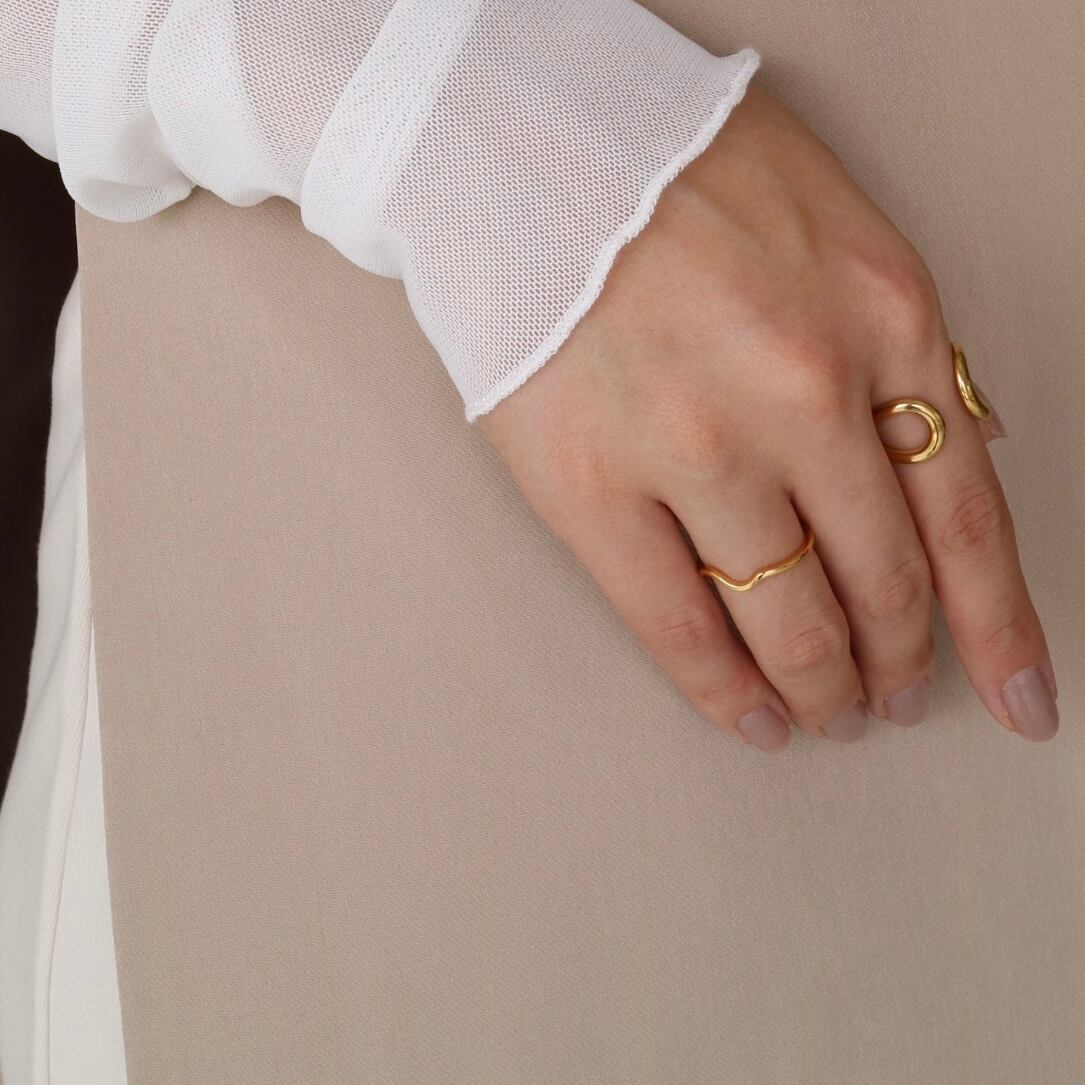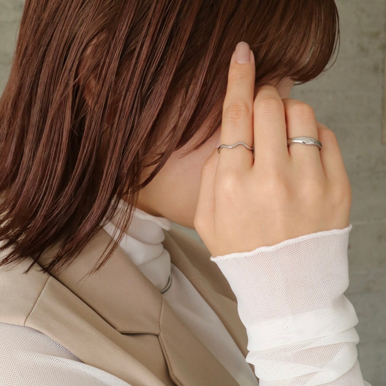 他のリングとの相性も良いので、ボリュームのあるリングと組み合わせてもバランス良く手元コーデが仕上がります。