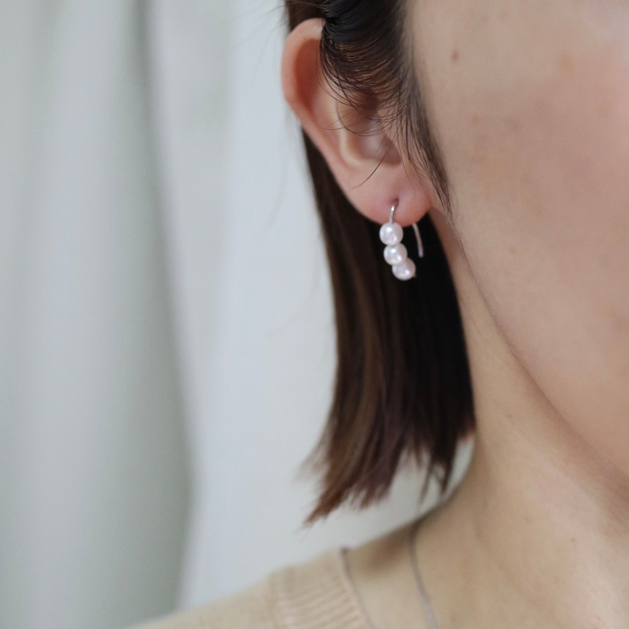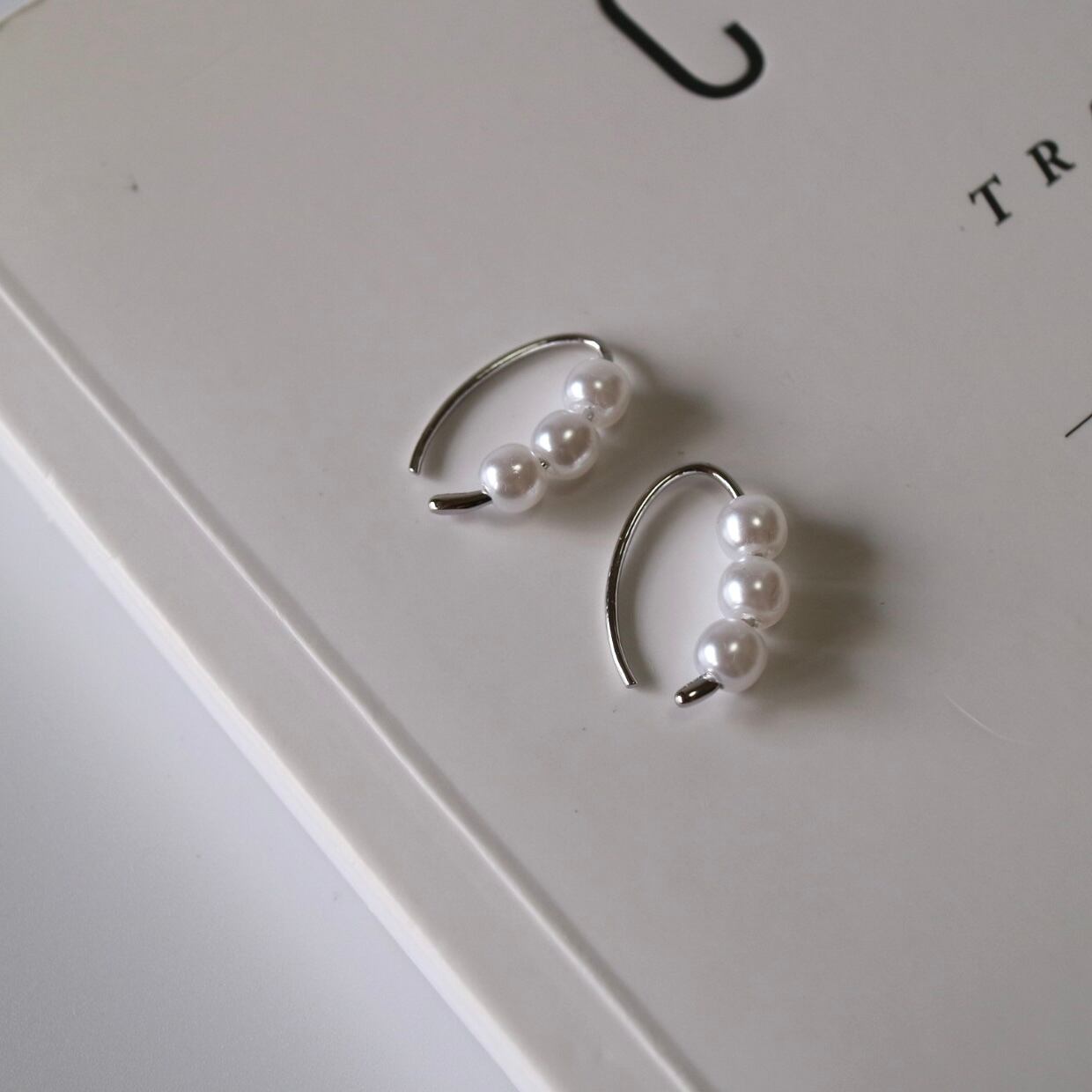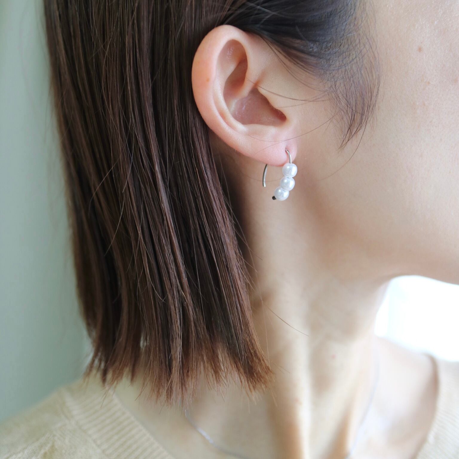 耳元でゆらゆら揺れるシルエットが可愛いパールフックピアスです。
