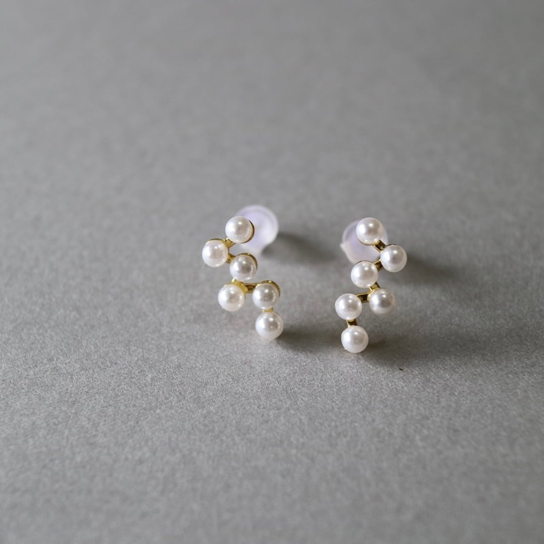 耳元から流れ落ちるようなデザインが素敵なパールピアスです。