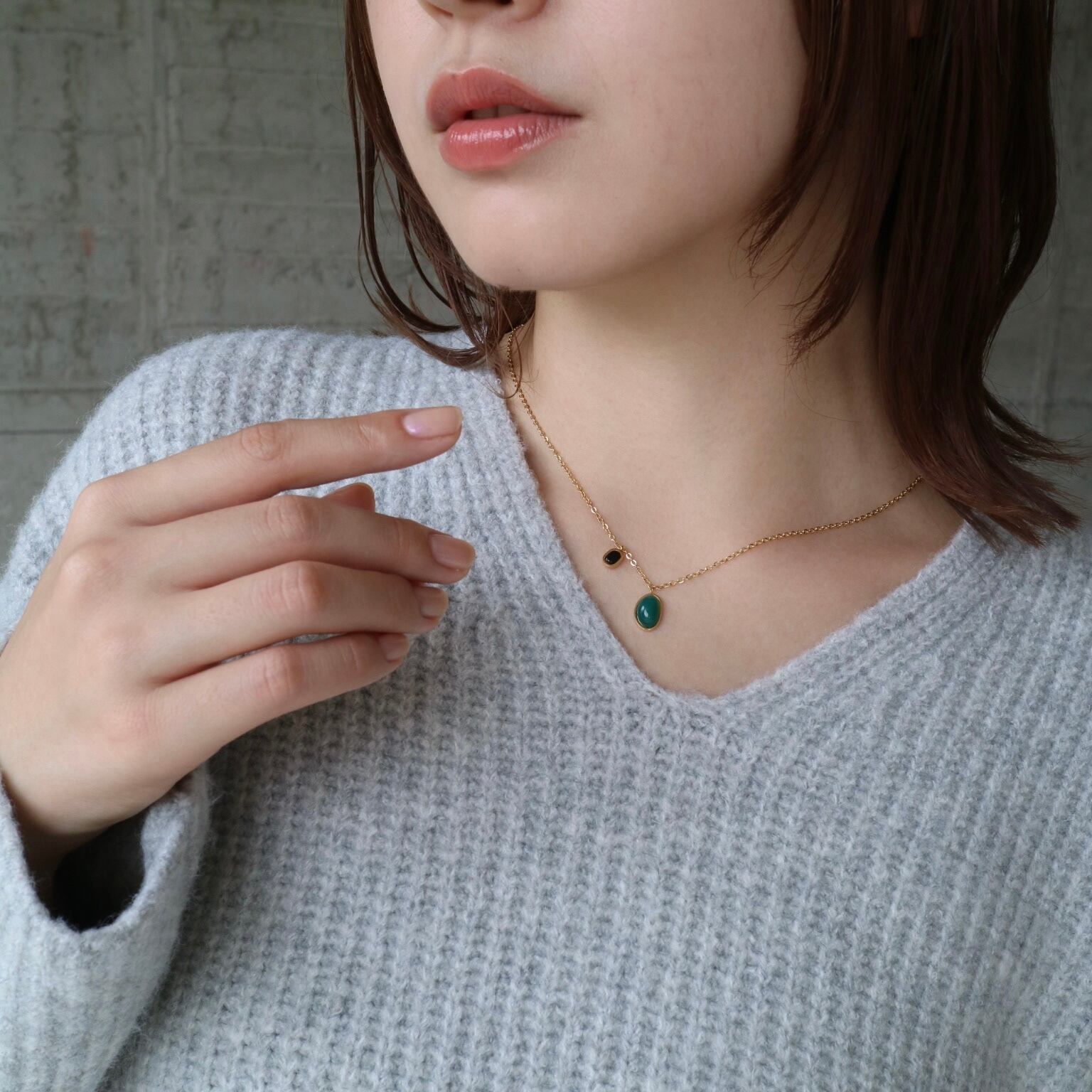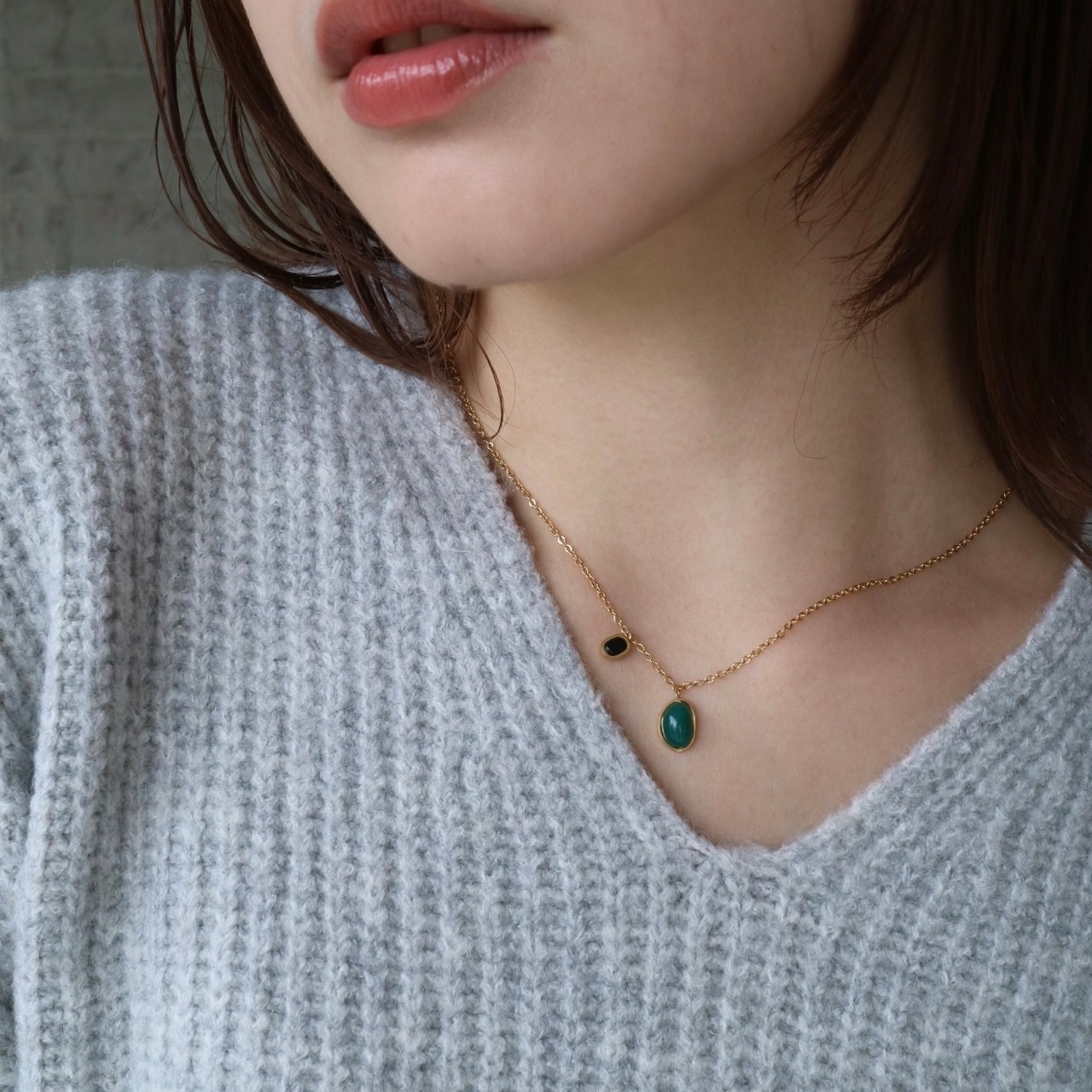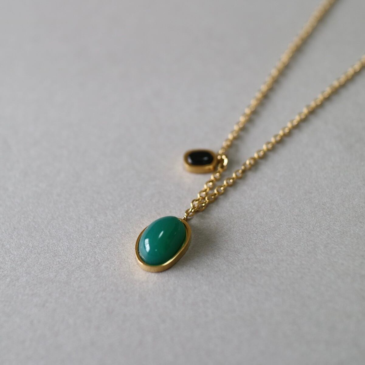 グリーンとブラックのカラーストーンを組み合わせたネックレスです。