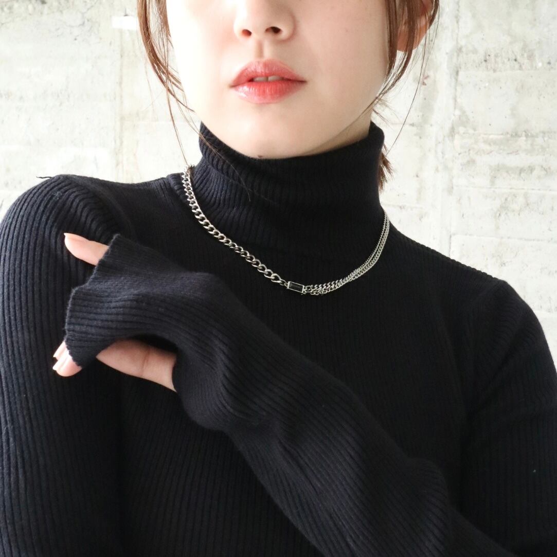 シンプルなタートルネックに合わすだけでもコーディネートが引き締まり、