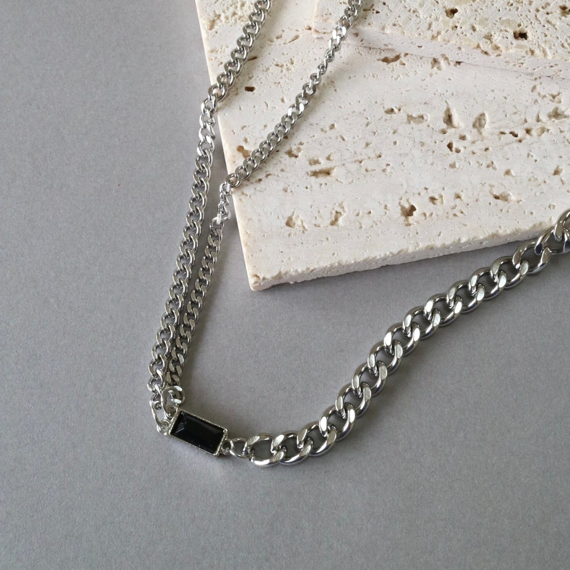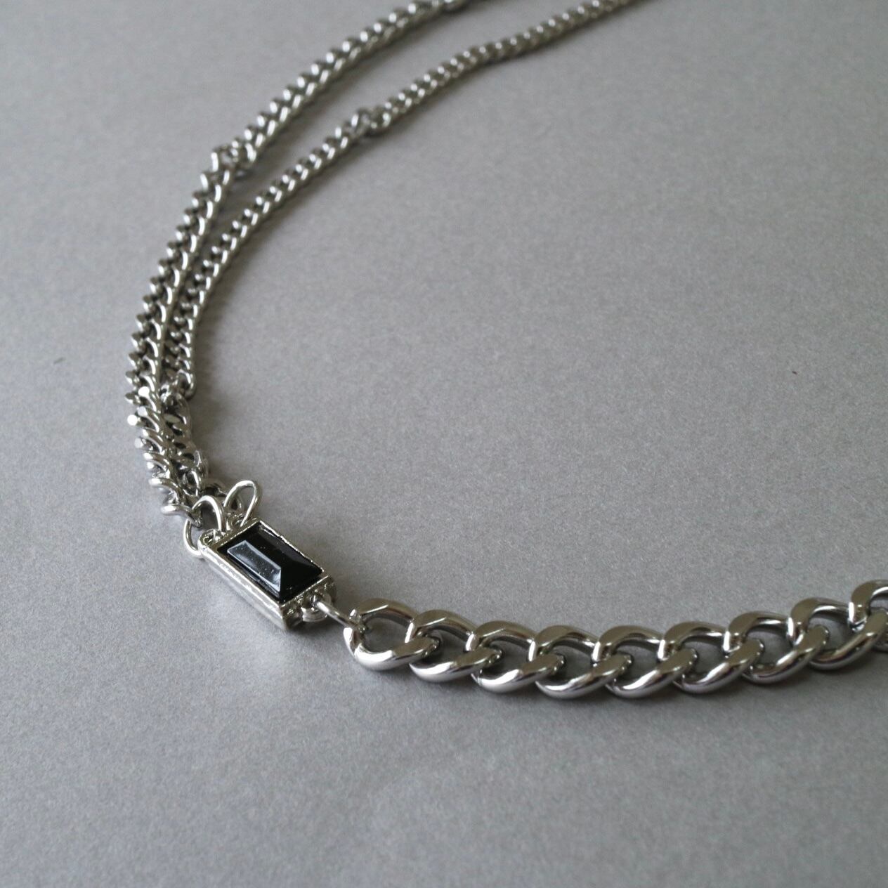 ややボリュームのあるチェーンにブラックカラーのモチーフを合わせた