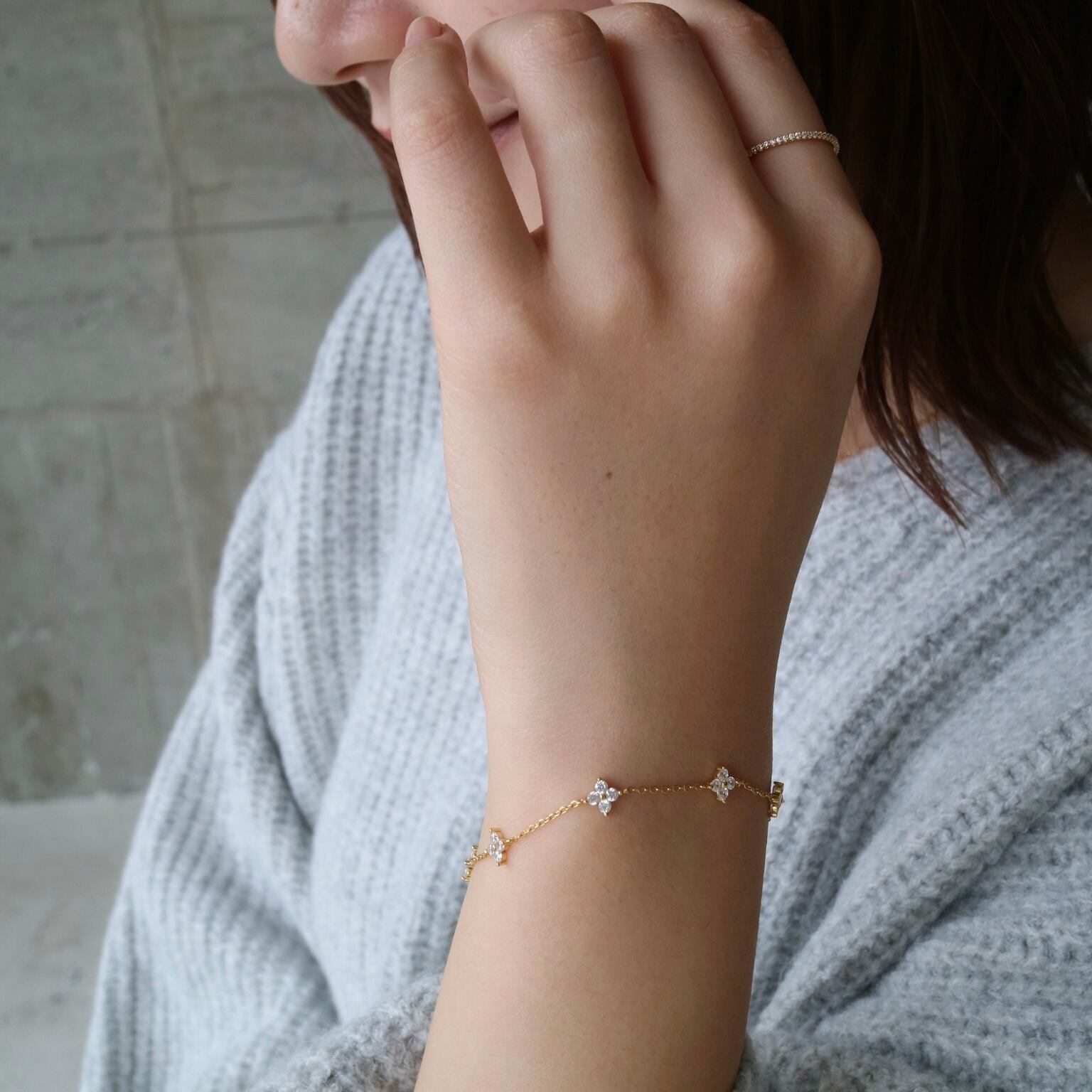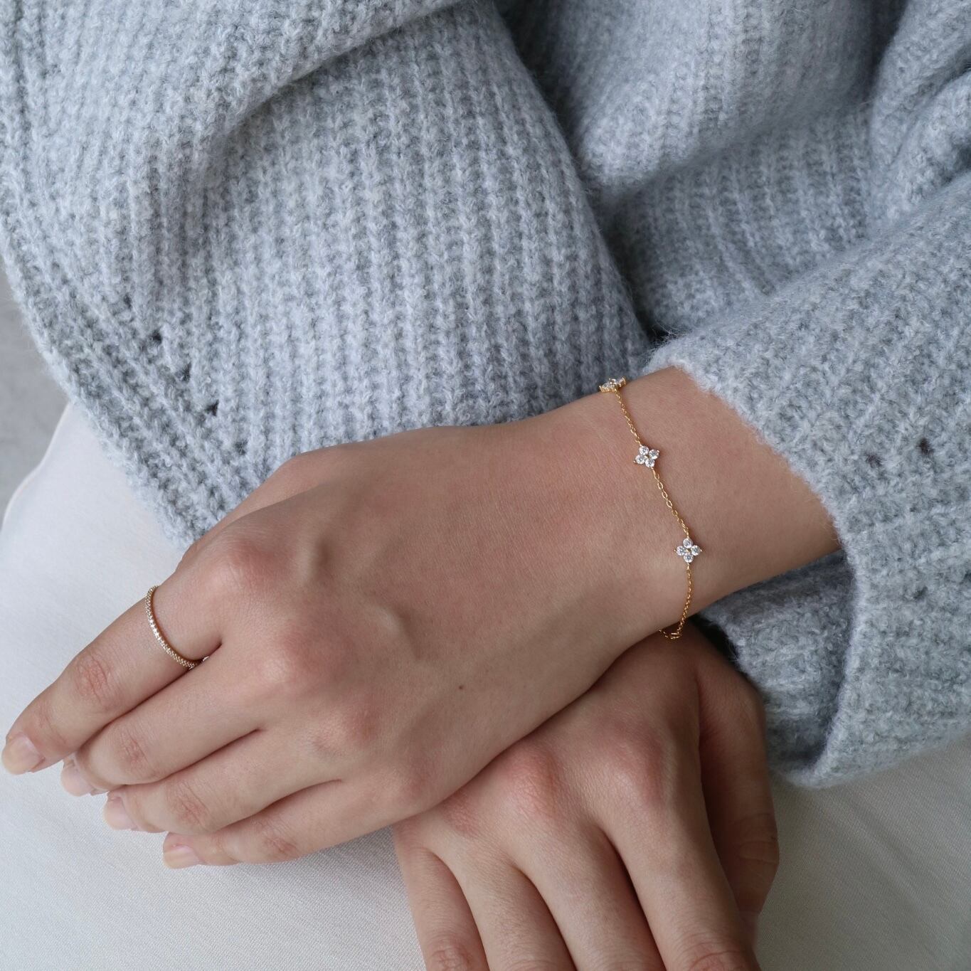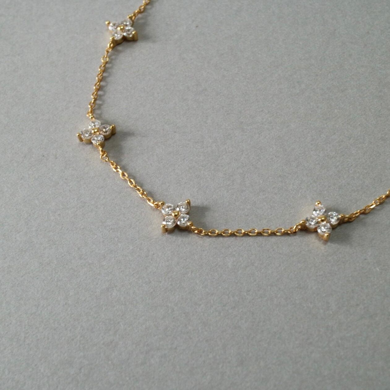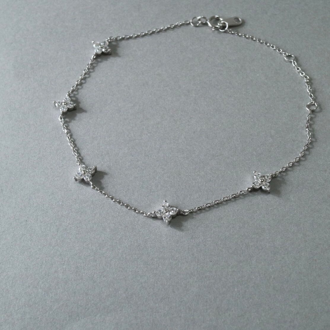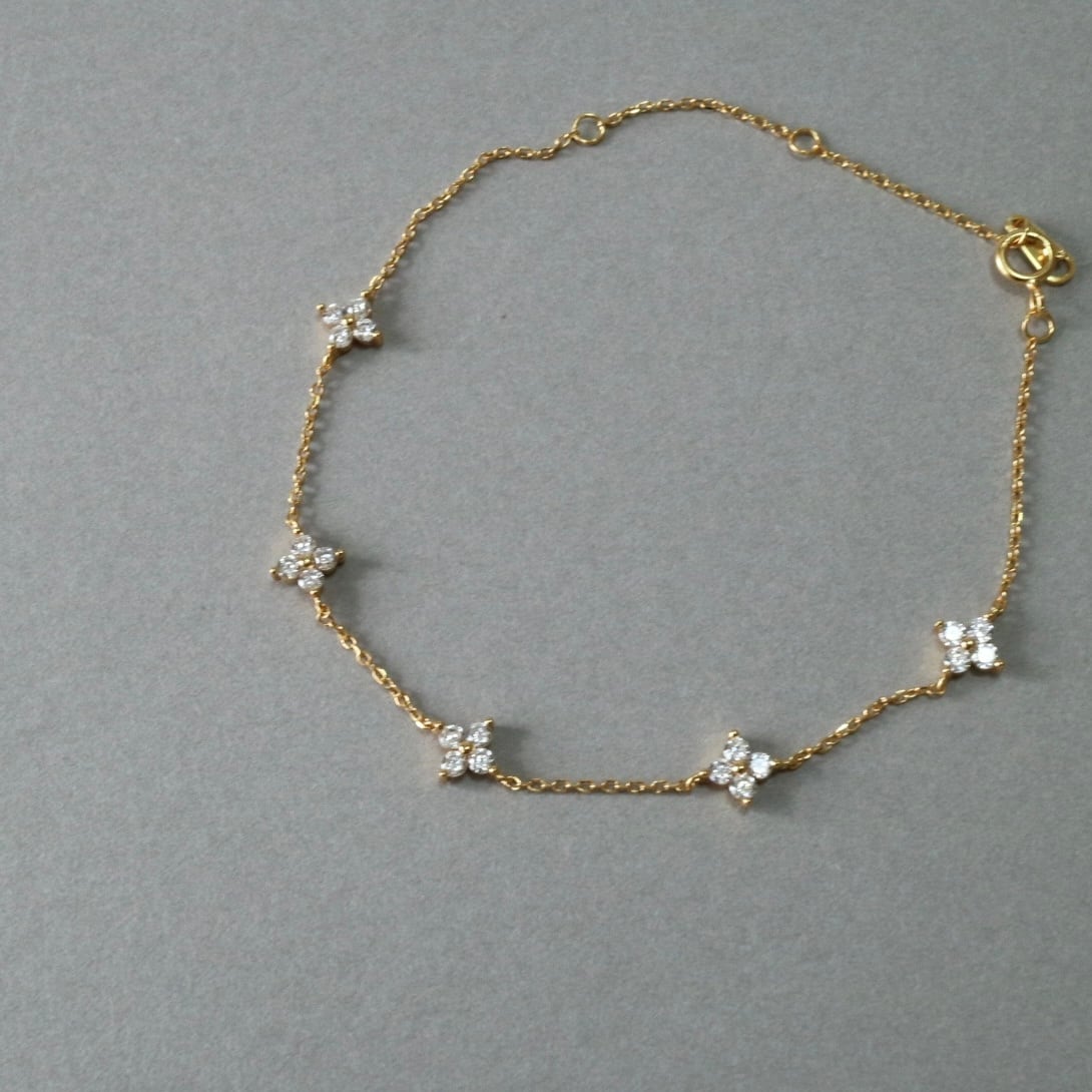 煌めくジルコニアで作られたフラワーモチーフが可愛いブレスレットです。