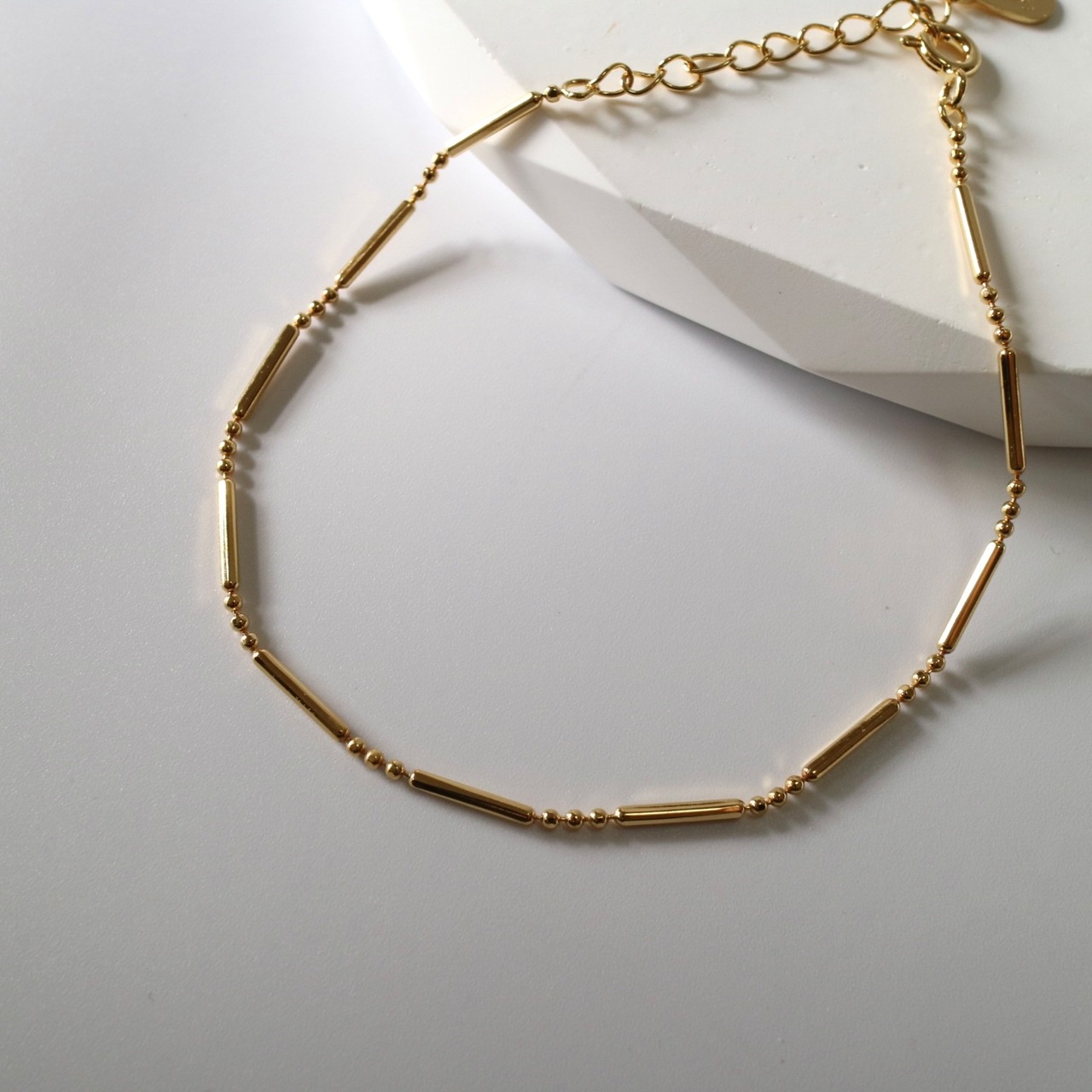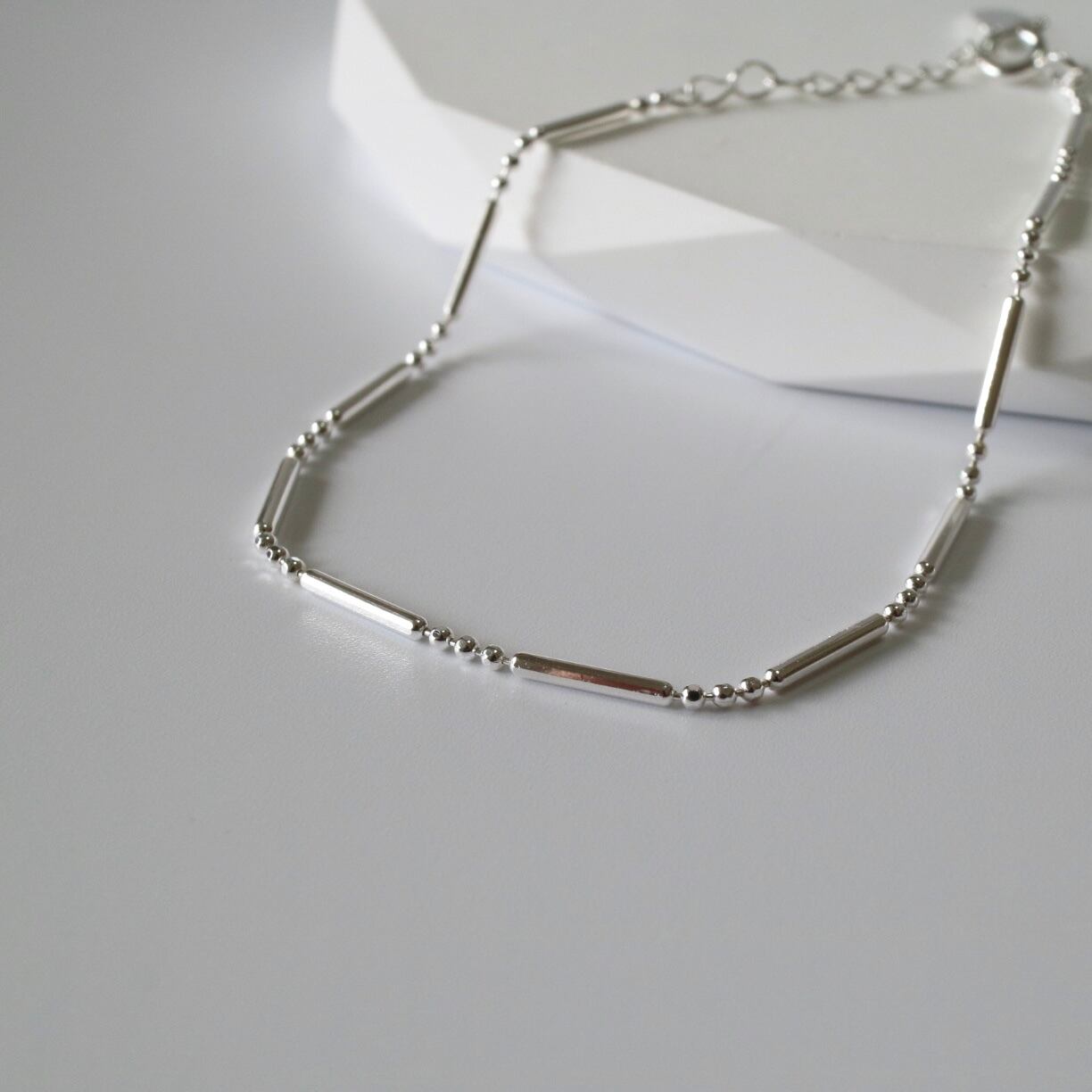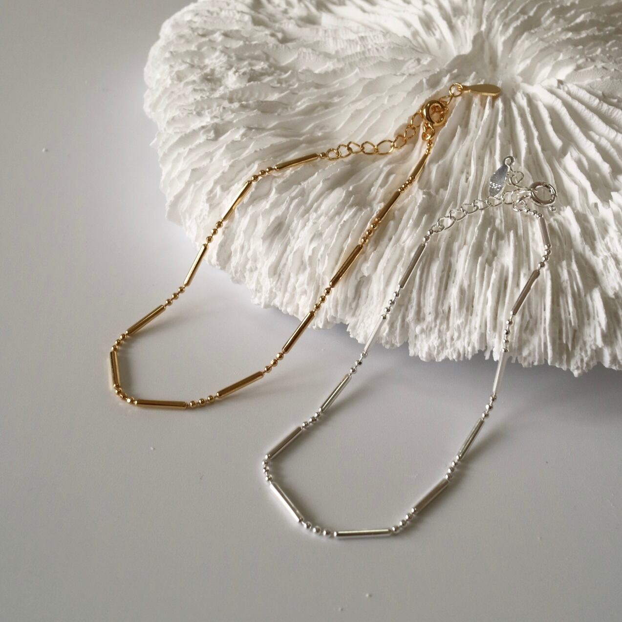 シンプルなステッィクパーツとボールチェーンを組み合わせた