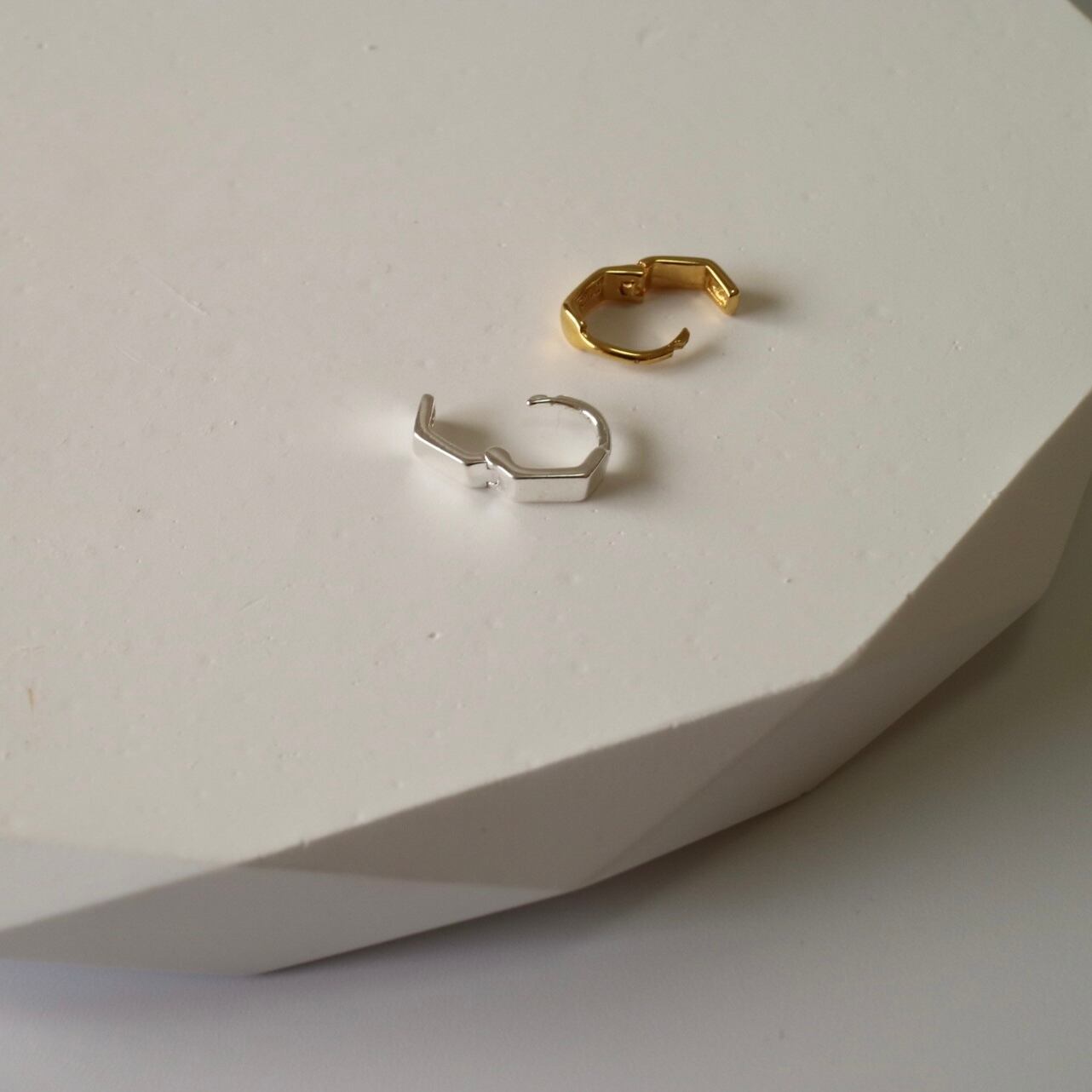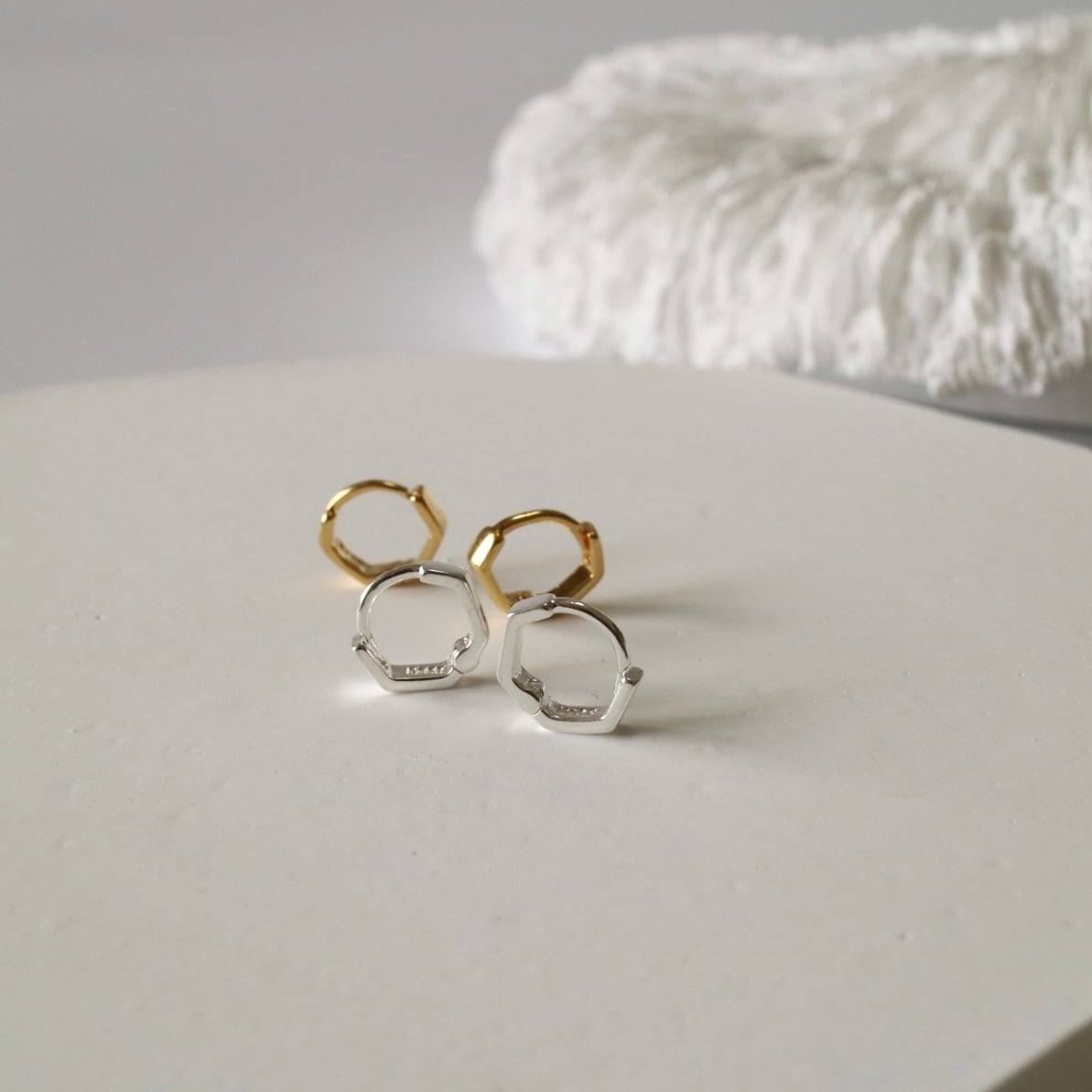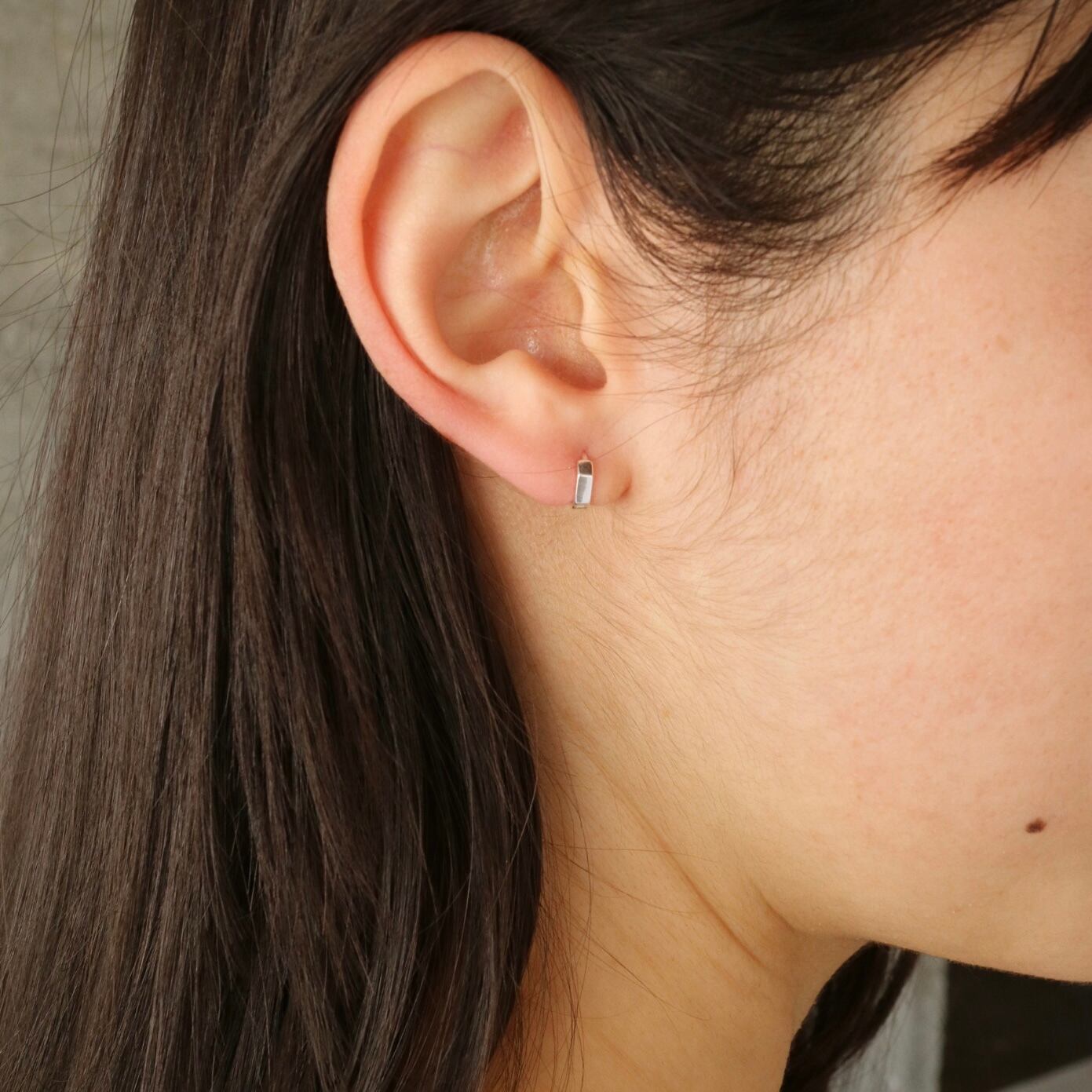 洗練されたスクエアフォルムが魅力のワンタッチフープピアス。