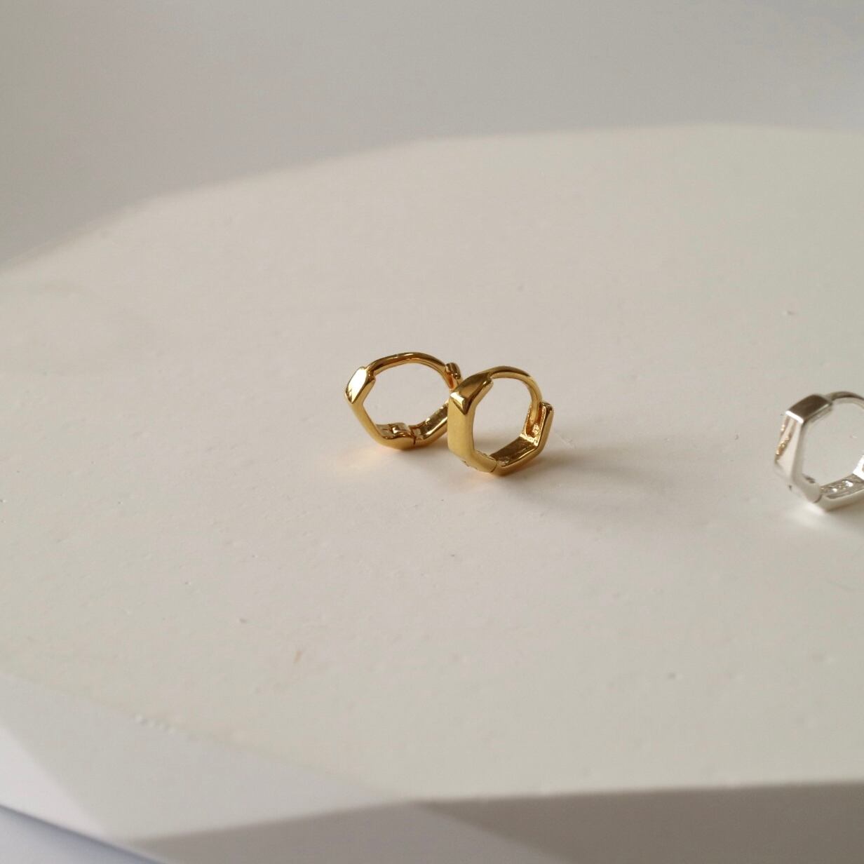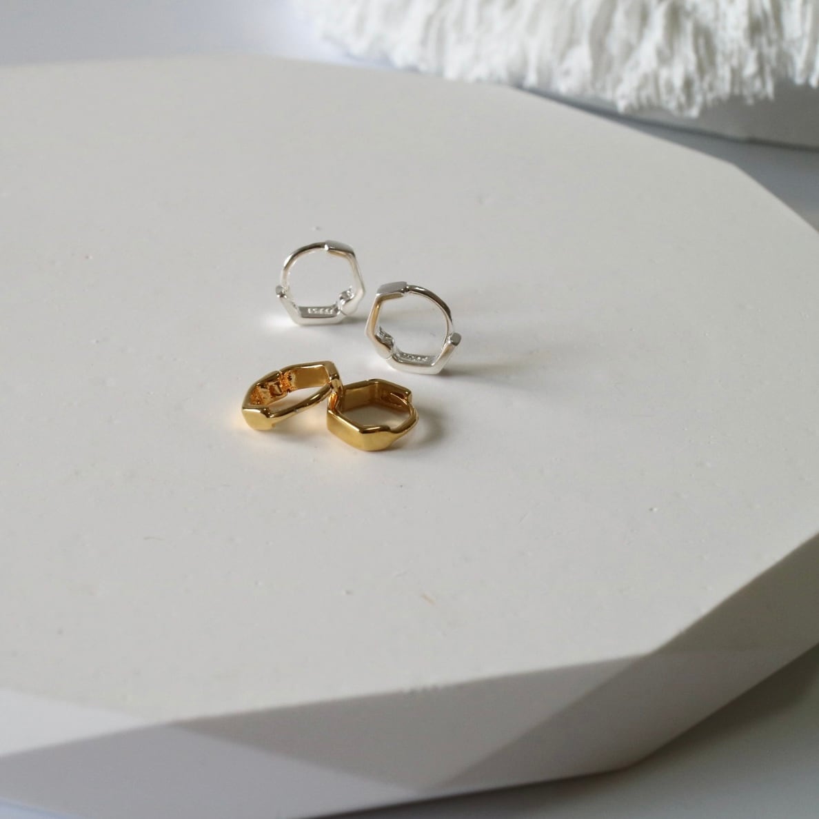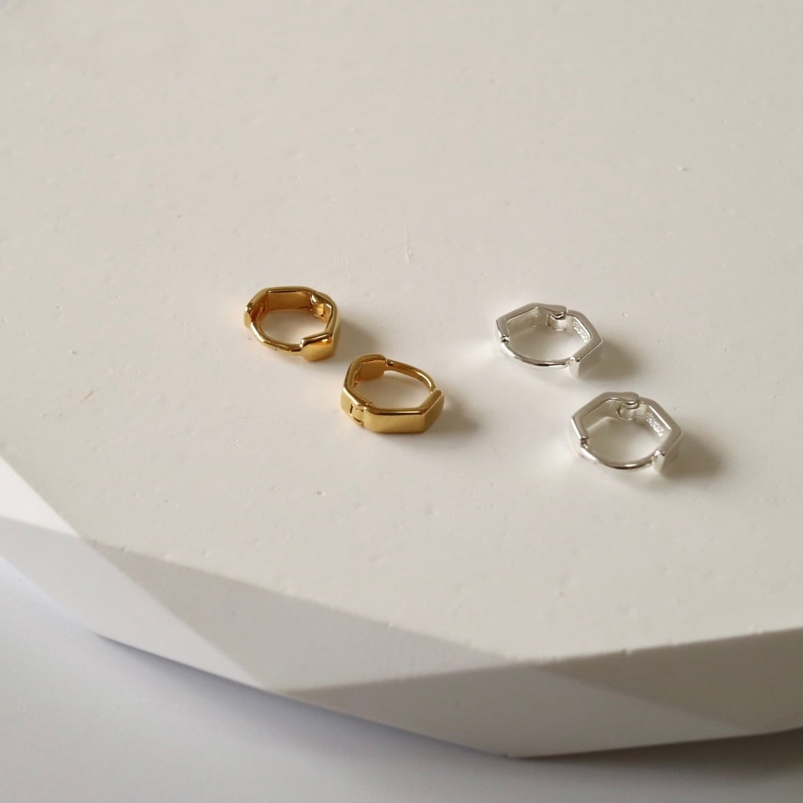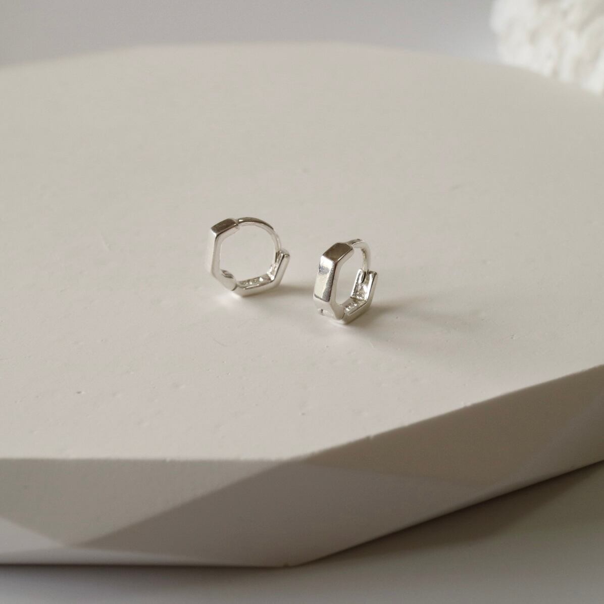 洗練されたスクエアフォルムが魅力のワンタッチフープピアス。
